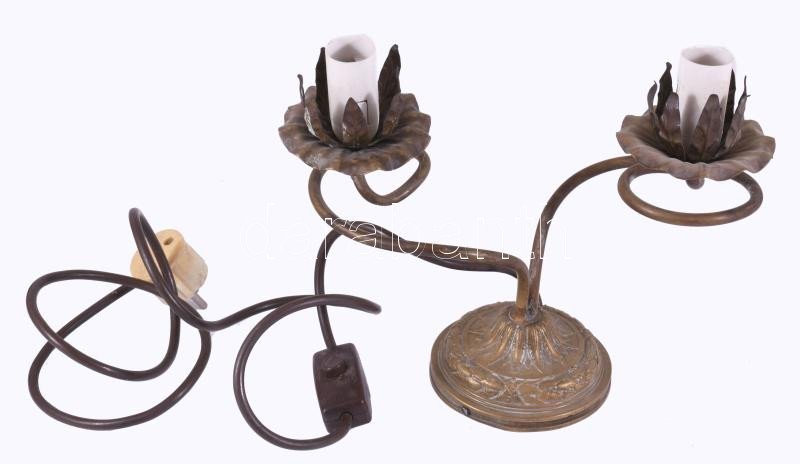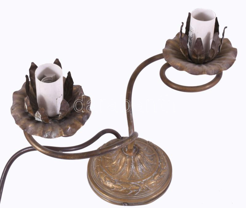Leírás: Szecessziós kétágú réz lámpa, 27x22 cm