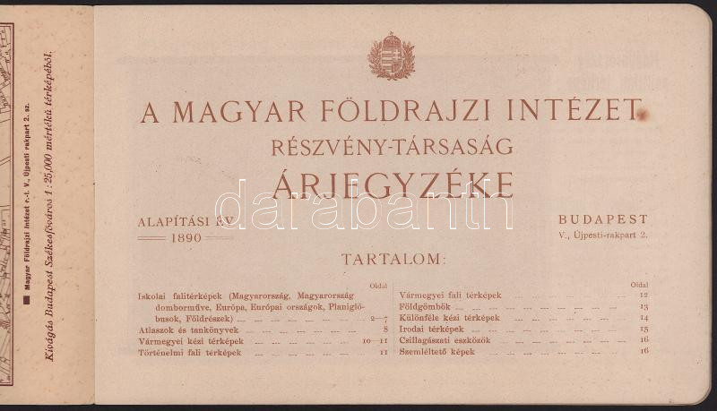 Leírás: 1933 Magyar Földrajzi Intézet Rt. árjegyzéke 16 p 25 cm