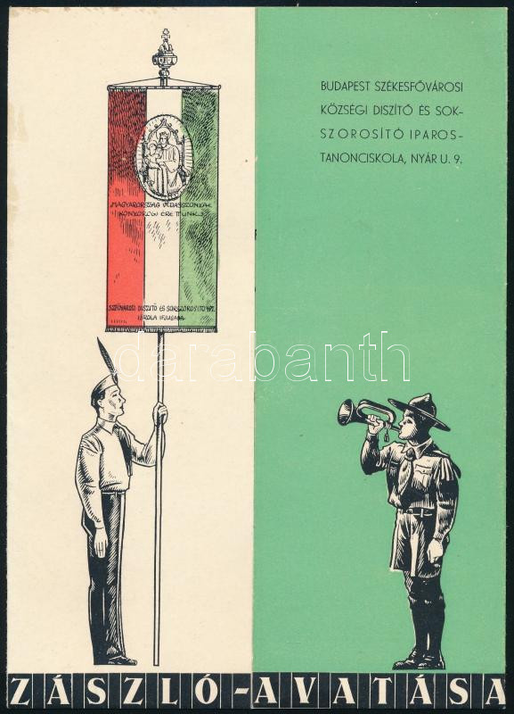 1936 A Budapest Székesfővárosi Községi Díszítő és sokszorosító iparost... https://www.darabanth.com/hu/517-Filatelia-kepeslap-numizmatika-mutargy-konyv-papirregiseg-ekszer-aukcio/522.0/Mutargy-papirregiseg-egyeb/Nyomtatvanyok~75/1936-A-Budapest-Szekesfovarosi-Kozsegi-Diszito-es-sokszorosito-iparostanonciskola-zaszloavatasi~II3507414
