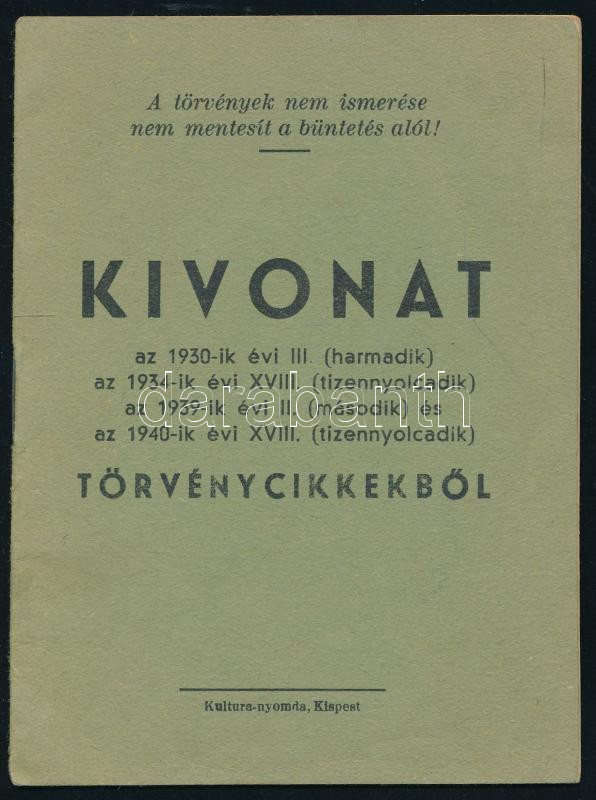 1940 "Óvakodj a kémektől és szabotálóktól!", kivonatvonatkozó törvényc... https://www.darabanth.com/hu/517-Filatelia-kepeslap-numizmatika-mutargy-konyv-papirregiseg-ekszer-aukcio/522.0/Mutargy-papirregiseg-egyeb/Nyomtatvanyok~75/1940-Ovakodj-a-kemektol-es-szabotaloktol-kivonatvonatkozo-torvenycikkekbol-15p~II3500172