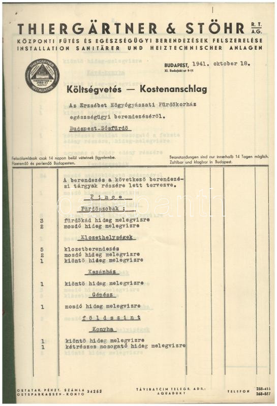 1941 Bp., Thiergärtner & Stöhr Központi Fűtés és Egészségügyi Bere... https://www.darabanth.com/hu/517-Filatelia-kepeslap-numizmatika-mutargy-konyv-papirregiseg-ekszer-aukcio/522.0/Mutargy-papirregiseg-egyeb/Okmanyok~58/1941-Bp-Thiergartner-Stohr-Kozponti-Futes-es-Egeszsegugyi-Berendezesek-felszerelese-koltsegvetes~II3504159