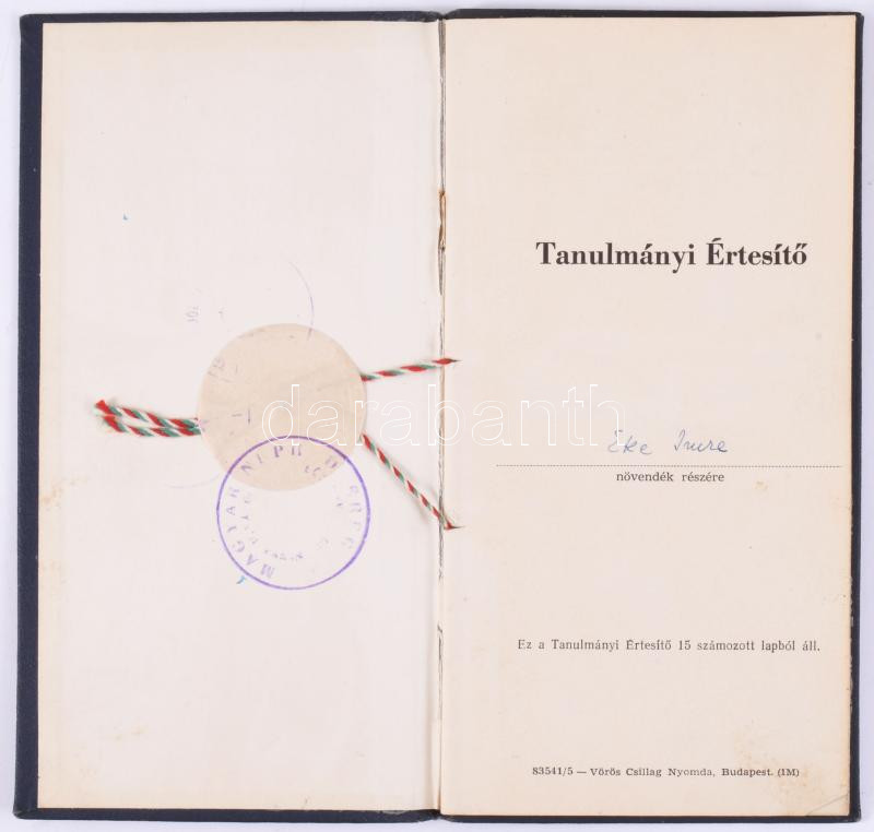 Leírás: 1955-1958 II. Rákóczi Ferenc Katonai Középiskola tanulmányi értesítő
