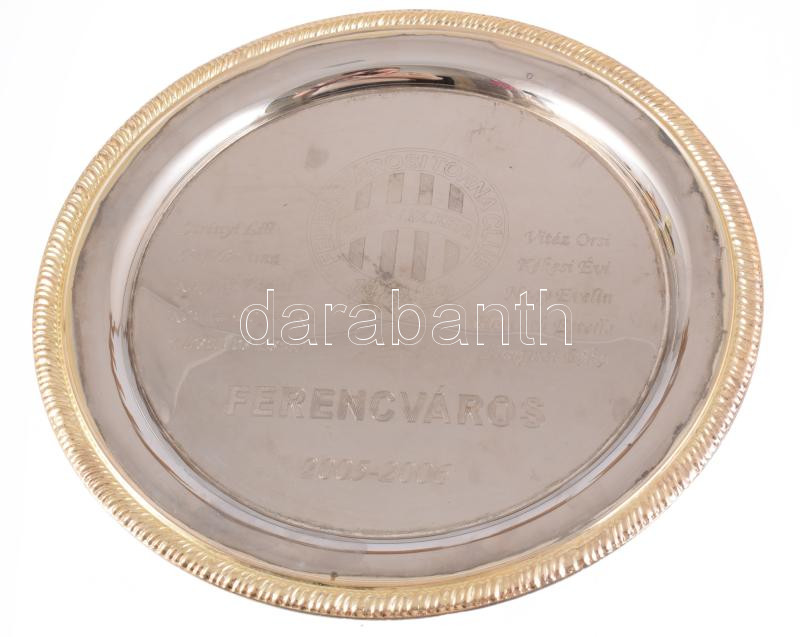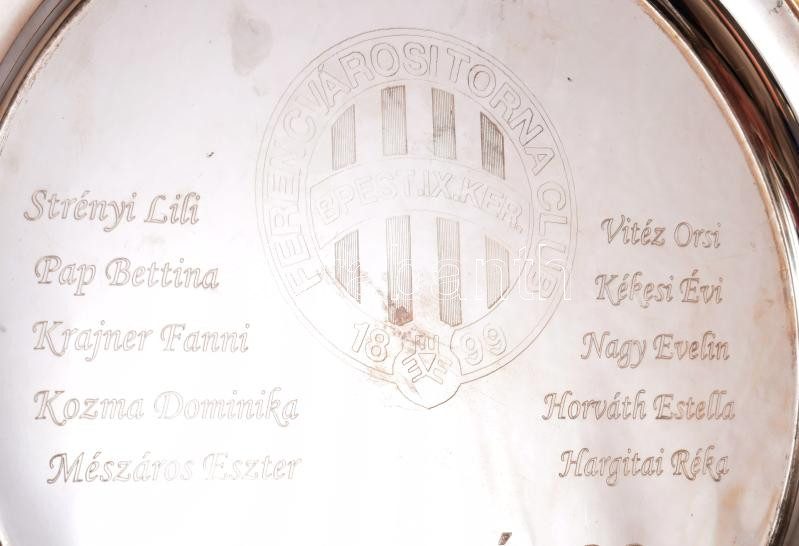 Leírás: 2006 FTC Ferencváros női kézilabdacsapat tagjainak nevével és a Fradi címerrel gravírozott tálca 26 cm