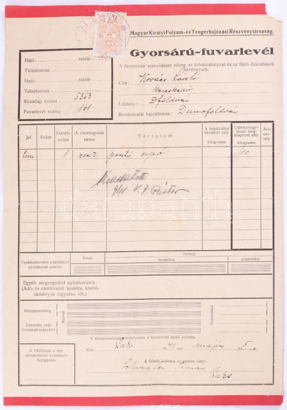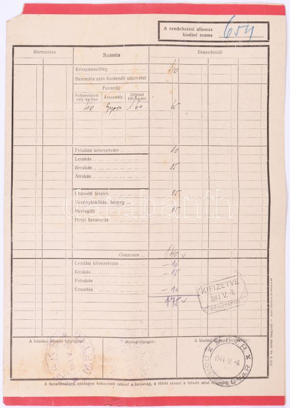ca 1940 MFTR 12 db gyorsárú fuvarlevél illetékbélyegekkel https://www.darabanth.com/hu/517-Filatelia-kepeslap-numizmatika-mutargy-konyv-papirregiseg-ekszer-aukcio/522.0/Mutargy-papirregiseg-egyeb/Okmanyok~58/ca-1940-MFTR-12-db-gyorsaru-fuvarlevel-illetekbelyegekkel~II3508613
