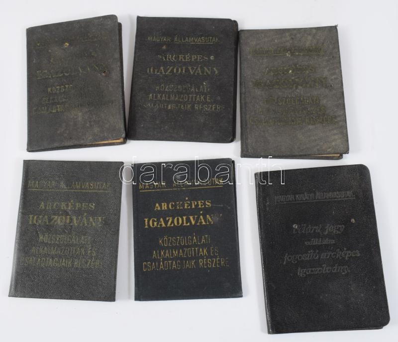 cca 1943-1980 Fényképes MÁV igazolványok, 6 db, változó állapotban https://www.darabanth.com/hu/517-Filatelia-kepeslap-numizmatika-mutargy-konyv-papirregiseg-ekszer-aukcio/522.0/Mutargy-papirregiseg-egyeb/Okmanyok~58/cca-1943-1980-Fenykepes-MAV-igazolvanyok-6-db-valtozo-allapotban~II3506823