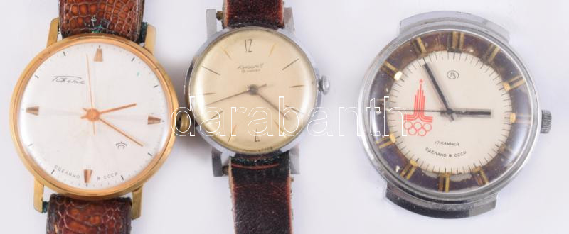 Leírás: 3 darab szovjet karóra, közte Wostok 1980 olimpiai óra, szervizelendőek, nem működnek.