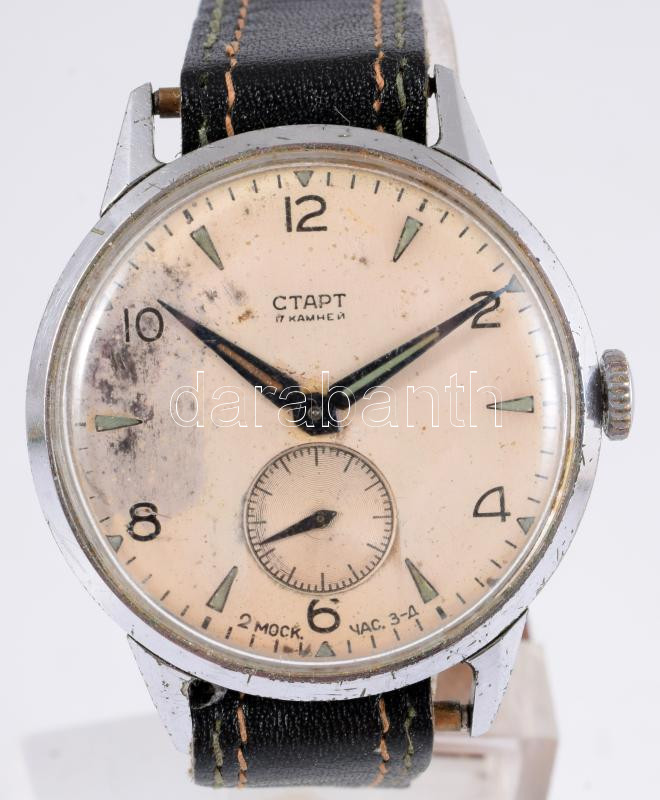 Slava Start karóra, másodperc segédkörrel, mechanikus, foltos számlap,... https://www.darabanth.com/hu/517-Filatelia-kepeslap-numizmatika-mutargy-konyv-papirregiseg-ekszer-aukcio/522.0/Mutargy-papirregiseg-egyeb/Orak~89/Slava-Start-karora-masodperc-segedkorrel-mechanikus-foltos-szamlap-mukodik-d-34mm~II3503617