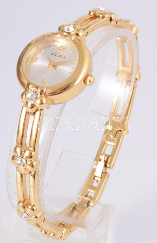Leírás: Solo aranyszínű női karóra, kvarc, fém, d: 2 cm
