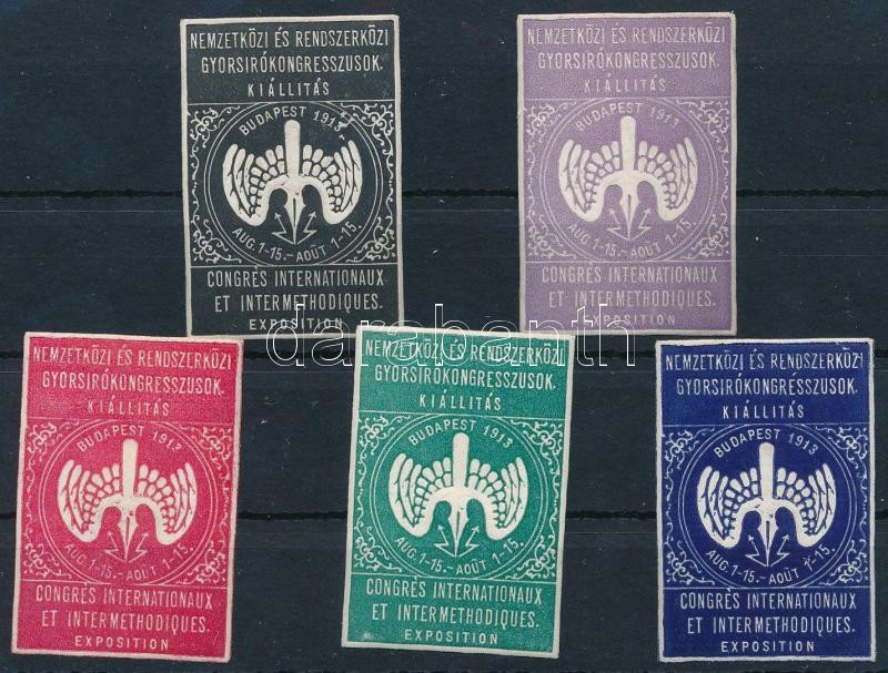 Leírás: 1913 Nemzetközi és rendszerközi gyorsírókongresszusok kiállítás 5 klf levélzáró