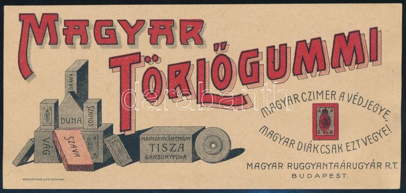 Magyar Törlőgummi, a Ruggyantagyár rt. számolócédulája https://www.darabanth.com/hu/517-Filatelia-kepeslap-numizmatika-mutargy-konyv-papirregiseg-ekszer-aukcio/522.0/Mutargy-papirregiseg-egyeb/Reklam~64/Magyar-Torlogummi-a-Ruggyantagyar-rt-szamolocedulaja~II3508443