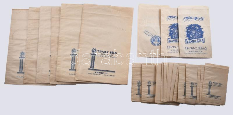 Leírás: cca 1940 Tevely Béla Szent Klára gyógyszertára Bp XI. Horthy Miklós út gyógyszeres és teás zacskók, kb 50 db, három féle méret és grafika, mind jó állapotban 15x23 cm ig
