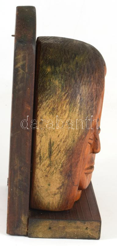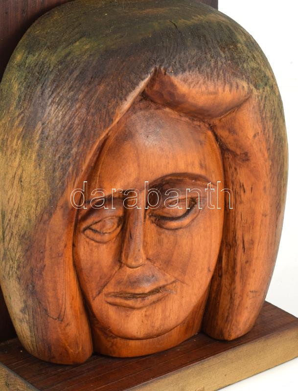 Jálics Gyula (1940-2016): Női fej. Faragott fa, jelzés nélkül, m: 25 cm