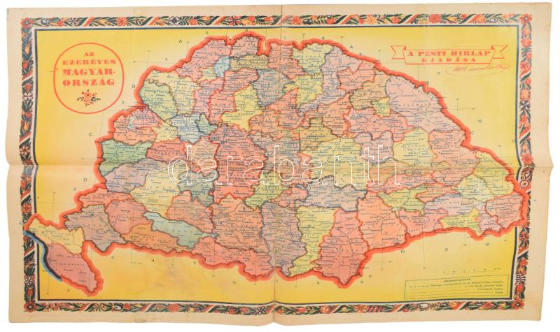 1938 Az ezeréves Magyarország térképe, a hátoldalon Európa 1938 végén,... https://www.darabanth.com/hu/517-Filatelia-kepeslap-numizmatika-mutargy-konyv-papirregiseg-ekszer-aukcio/522.0/Mutargy-papirregiseg-egyeb/Terkepek~72/1938-Az-ezereves-Magyarorszag-terkepe-a-hatoldalon-Europa-1938-vegen-a-Pesti-Hirlap-kiadasa-~II3507112