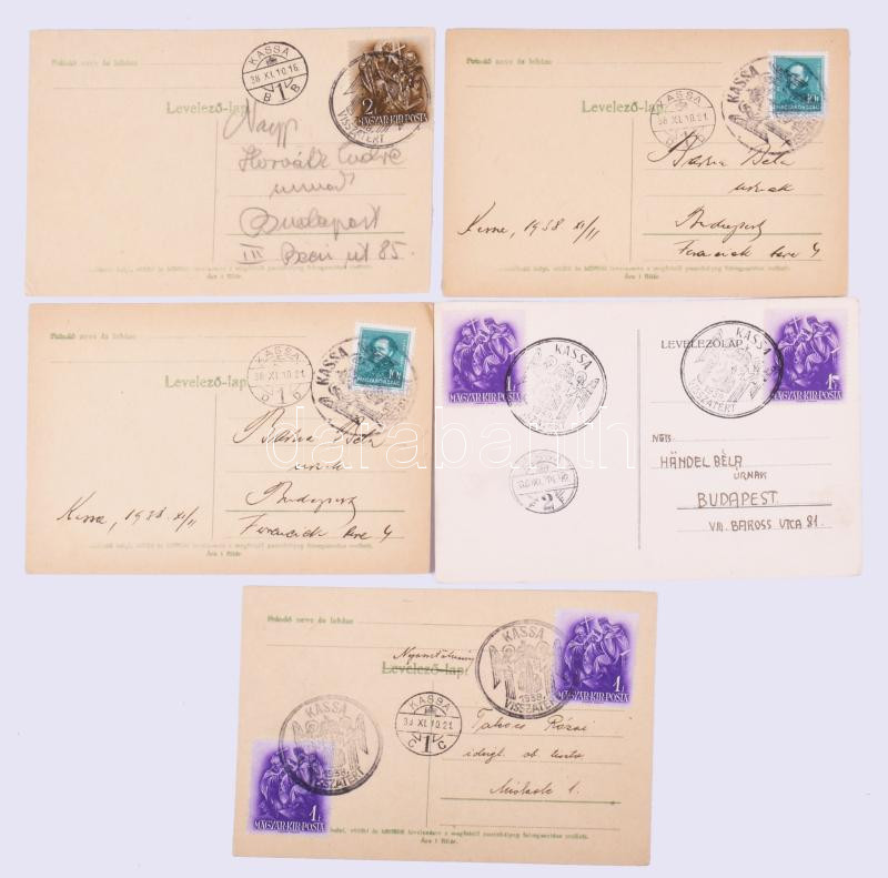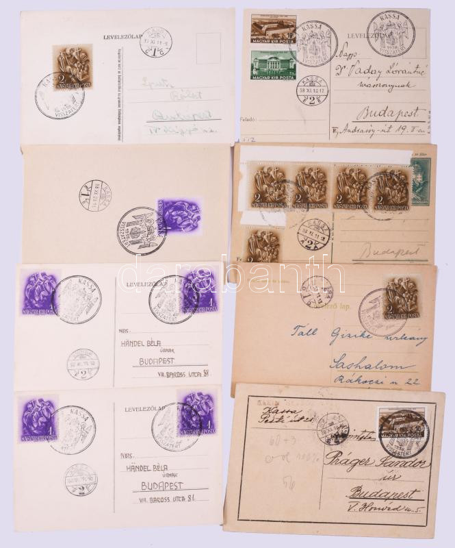 1938 Felvidék, 19 db "Kassa visszatért" bélyegzés, különféle bélyegekkel