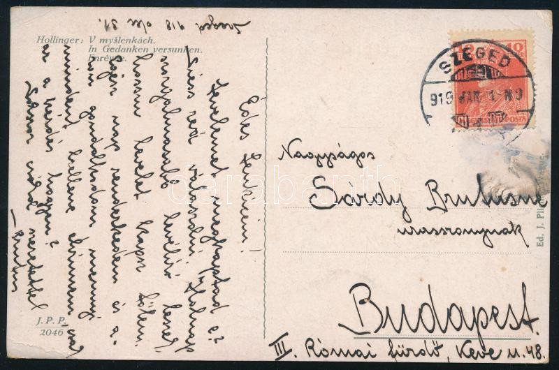 1938 Sárdy Brutus (1892-1970) festőművész, restaurátor autográf levelezőlapja feleségéhez, Kézdi-Kovács Lenkéhez, Kézdi-Kovács László (1864-1942) festőművész, műkritikus lányához,