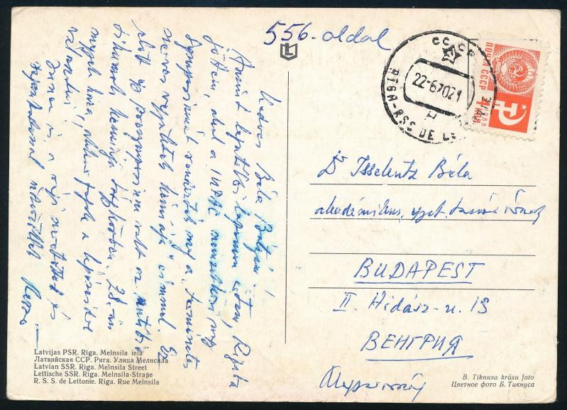 cca 1960 Kőnig Rezső (1900-1971) vegyész, gyógyszeripari kutató autográf képeslapja Issekutz Béla (1886-1979) Kossuth-díjas farmakológus, gyógyszervegyész részére, "Kedves Béla Bátyám!" megszólítással.