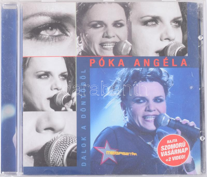 Póka Angéla - Dalok A Döntőből. CD, 2006. https://www.darabanth.com/hu/517-Filatelia-kepeslap-numizmatika-mutargy-konyv-papirregiseg-ekszer-aukcio/522.0/Mutargy-papirregiseg-egyeb/Zenei-bakelit-lemezek-CD-k-DVD-k~74/Poka-Angela-Dalok-A-Dontobol-CD-2006~II3505222