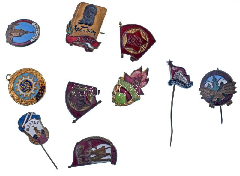 Vegyes, 10db-os szocialista jelvénytétel, közte zománcozott darabok T:vegyes, közte sérült