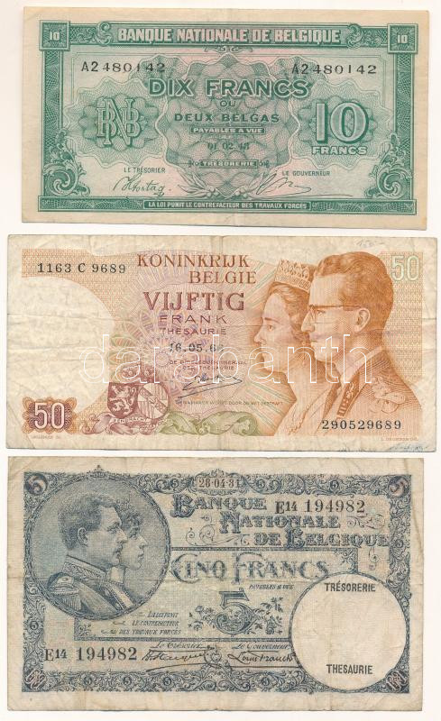 Leírás: Belgium 1931. 5Fr + 1943. 10Fr/1B + 1966. 50Fr T:F-VG