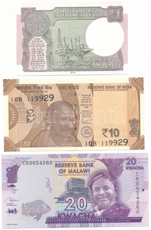 Leírás: India 2016. 1R + 2021. 10R + Malawi 2020. 20K T:UNC-AU