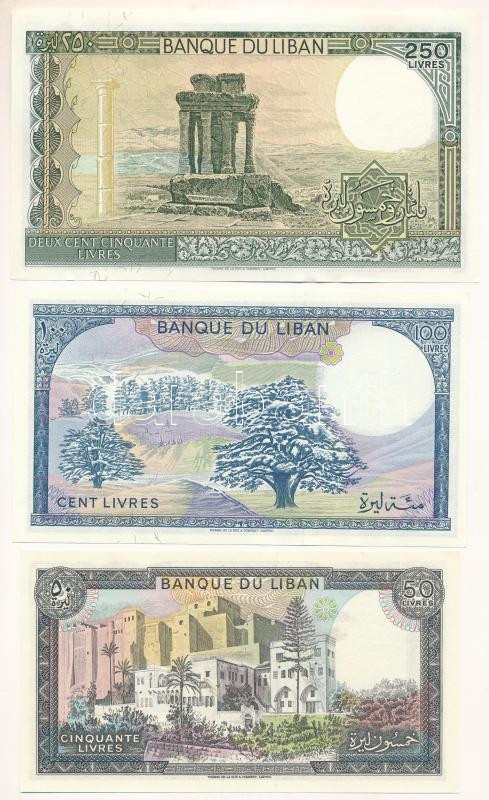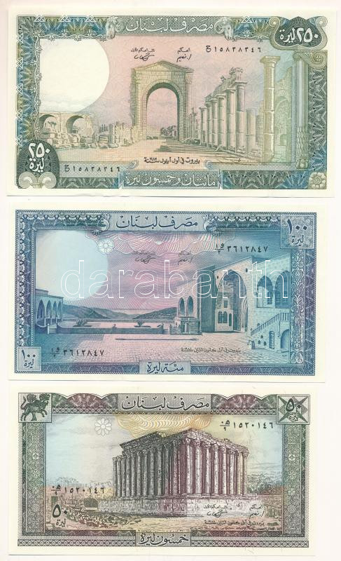 Lebanon 1987-1988. 50 ... https://www.darabanth.com/hu/517-Filatelia-kepeslap-numizmatika-mutargy-konyv-papirregiseg-ekszer-aukcio/522.0/Numizmatika/Kulfoldi-bankjegyek~481/Libanon-1987-1988-50L-250L-3xklf-T-UNC-AULebanon-1987-1988-50-Livres-250-Livres-3xdiff~II3509375