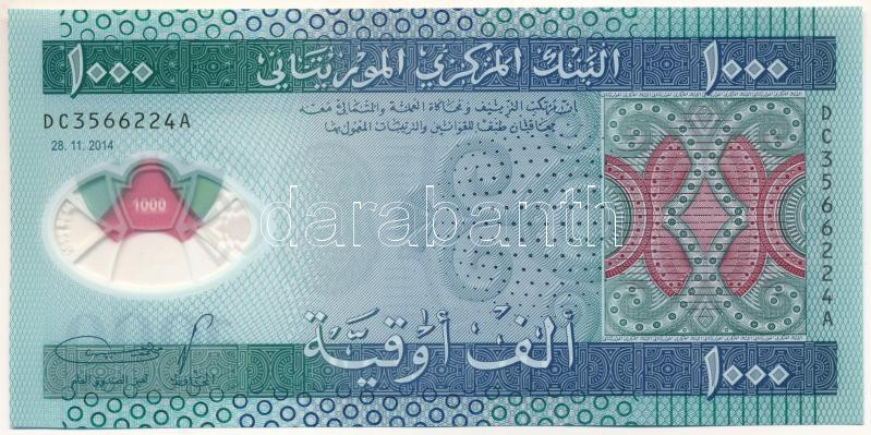 Mauritania 2014. ... https://www.darabanth.com/hu/517-Filatelia-kepeslap-numizmatika-mutargy-konyv-papirregiseg-ekszer-aukcio/522.0/Numizmatika/Kulfoldi-bankjegyek~481/Mauritania-2014-1000O-polimer-DC-3566224-A-T-UNCMauritania-2014-1000-Ouguiya-polymer-DC~II3509400