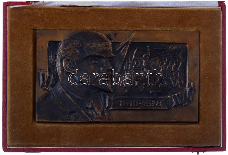 1978. "1918-1978" Lenint ábrázoló egyoldalas, bronz plakett, eredeti dísztokban (110x118mm) T:AU