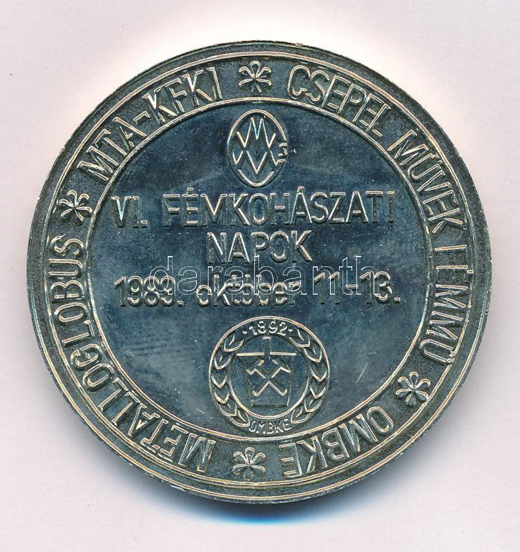 1989. "Metalloglobus - MTA-KFKI - Csepel Művek Fémmű - OMBKE - VI. Fémkohászati Napok 1989. október 11-13." kétoldalas ezüstpatinázott emlékérem a selmecbányai tanulmányi érem kémlészeti érmének képével (46mm) T:UNC,AU