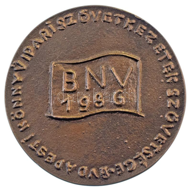 Borsos Miklós (1906-1990) 1986. "Budapesti Könnyűipari Szövetkezetek Szövetsége - BNV 1986" kétoldalas, öntött bronz emlékérem (73mm) T:AU