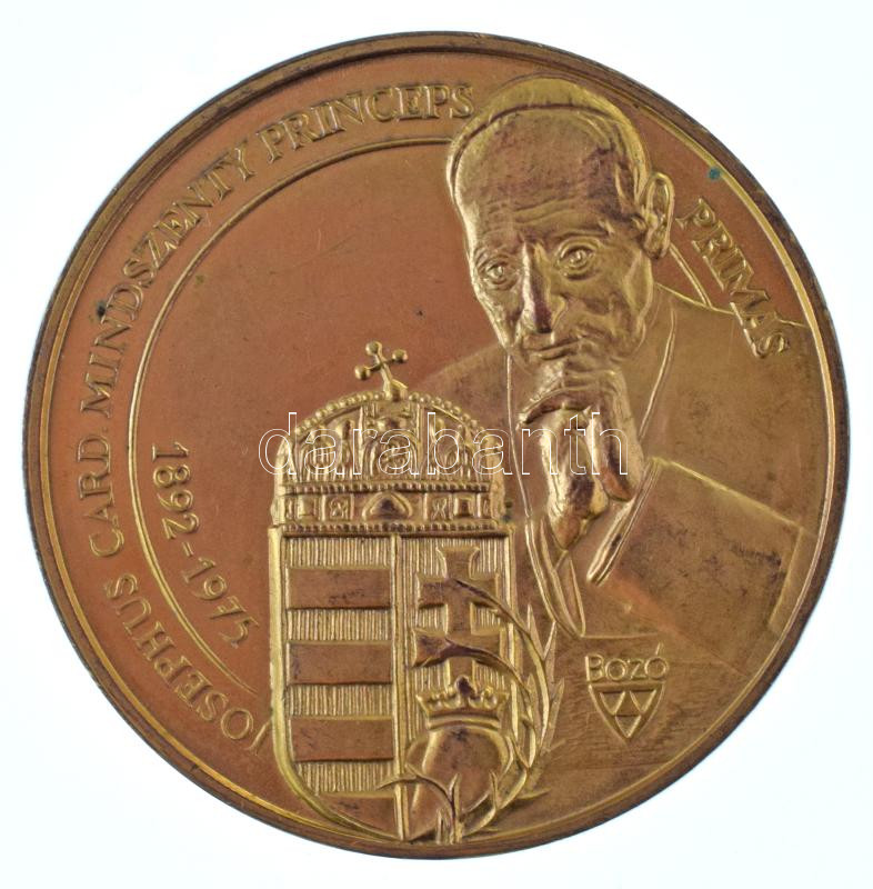 Bozó Gyula (1913-2004) / Szabó Géza (1939-) 1991. Mindszenty bíboros emlékére készült aranyozott fém emlékérem "JOSEPHUS CARD.MINDSZENTY PRINCEPS PRIMAS 1892-1975 / SZABAD HAZÁD VÉGSŐ NYUGHELYEDRE VÁR" (42,5mm) T:AU