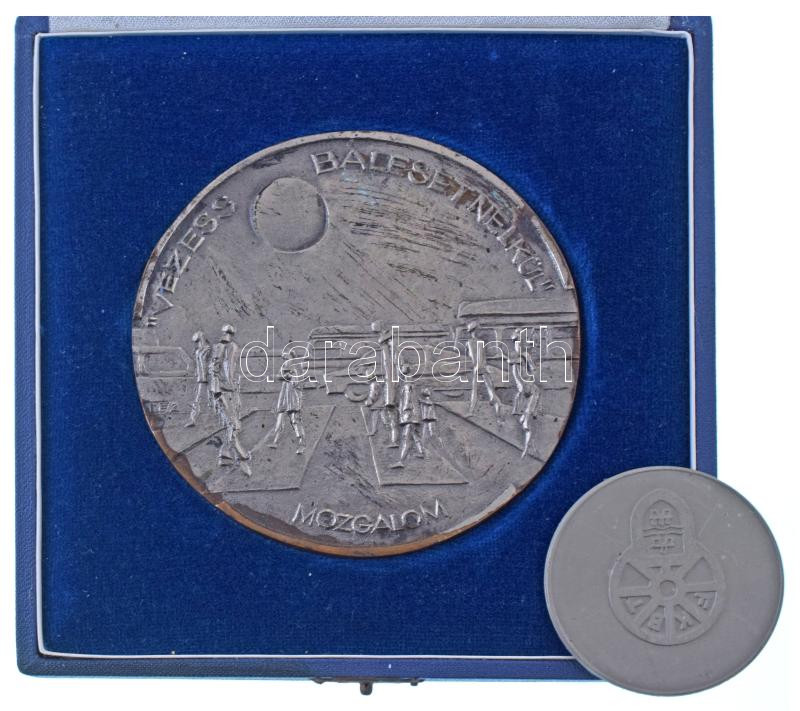 Rácz Edit (1936-) ~1970-1980. "Vezess Baleset Nélkül Mozgalom" ezüstözött bronz emlékérem, eredeti tokban (94mm) T:XF kopott ezüstözés