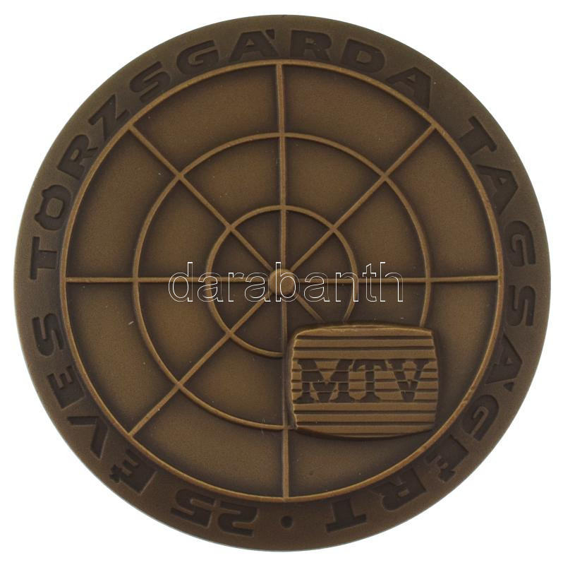 1980 k. "MTV - 25 éves Törzsgárda tagságért" egyoldalas bronz plakett műanyag tokban (70mm) T:AU