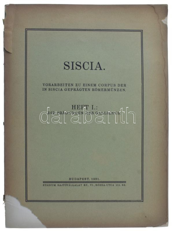 Leírás: Siscia Vorarbeiten zu einem Corpus der in Siscia geprägten Römermünzen - HEFT I.: Die prägungen des Gallienus. Német nyelvű füzet római érmékhez. Használt állapotú, szakadt borítóval