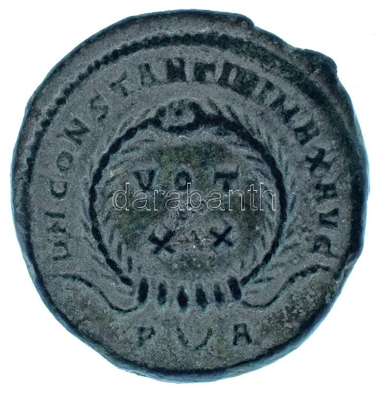 Roman Empire 321 / Constantine I / Arles / AE3 bronze "CONSTA-NTINVS AVG / DN CONSTANTINI MAX AVG - VOT dot XX - P crescent A" (3,45g) C:XF,VF