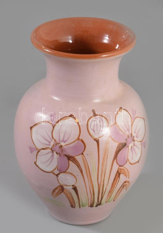 Leírás: Hódmezővásárhelyi ritka pink mázas váza, jelzett, hibátlan, m: 21 cm