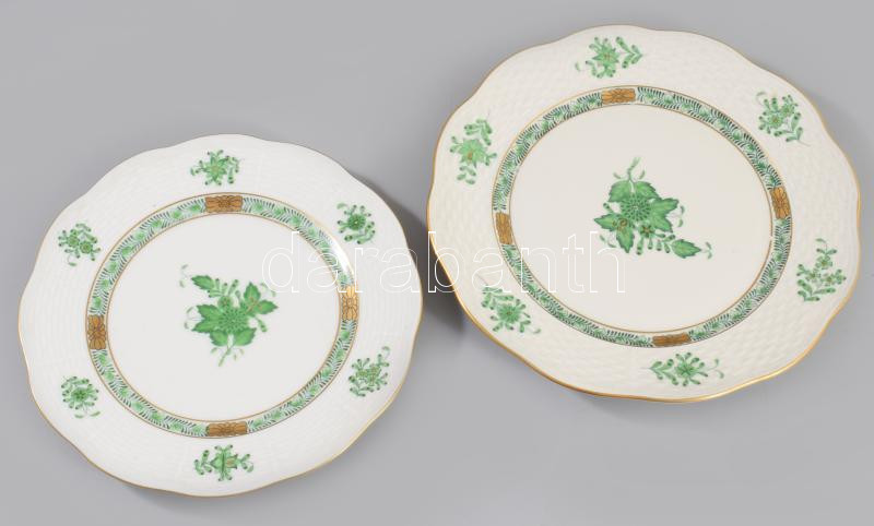 Leírás: 2 db Herendi Apponyi mintás porcelán süteményes tányér. Kézzel festett, jelzett, hibátlan. d: 19 cm, 16 cm