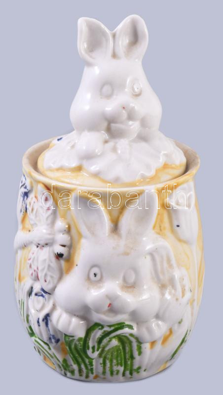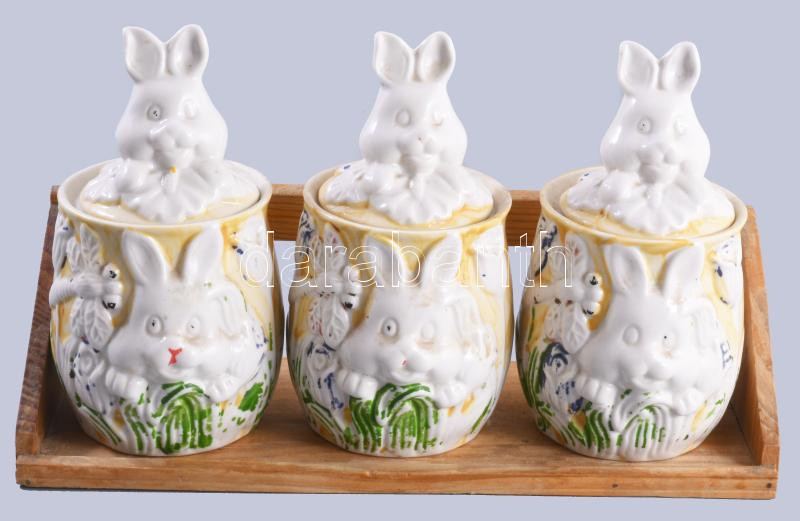 3 darab nyúlmintás fűszertartóedény, fa tartón, kopással, m: 15,5 cm https://www.darabanth.com/hu/517-Filatelia-kepeslap-numizmatika-mutargy-konyv-papirregiseg-ekszer-aukcio/522.0/Porcelan-keramia-uveg/Porcelan~83/3-darab-nyulmintas-fuszertartoedeny-fa-tarton-kopassal-m-15-5-cm~II3510639