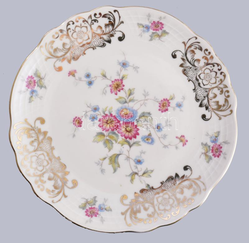 Leírás: Bavaria virágmintás egyszemélyes reggeliző készlet, csésze alátéttel és desszertes tányér. Jelzett, hibátlan, d: 19,5 cm