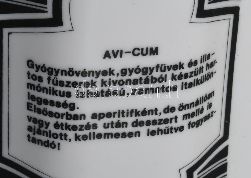 Hollóházi Miskolci Likőrgyár Avi-Cum italos üveg, jelzett, hibátlan, m... https://www.darabanth.com/hu/517-Filatelia-kepeslap-numizmatika-mutargy-konyv-papirregiseg-ekszer-aukcio/522.0/Porcelan-keramia-uveg/Porcelan~83/Hollohazi-Miskolci-Likorgyar-Avi-Cum-italos-uveg-jelzett-hibatlan-m-19-5-cm~II3505306