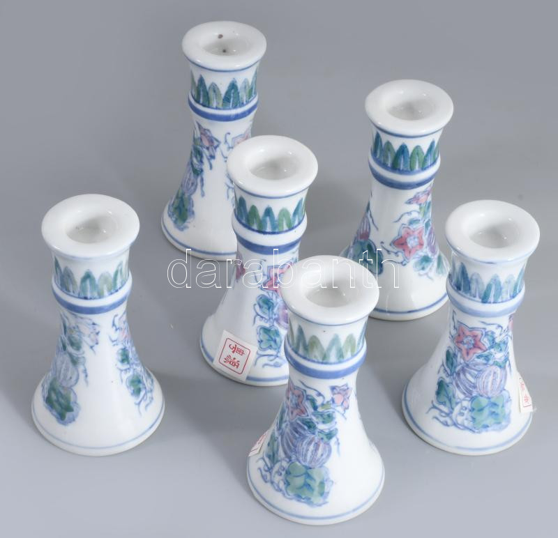 Kínai 6 darabos gyertyatartó garnitúra, címkével jelzett, m: 12 cm https://www.darabanth.com/hu/517-Filatelia-kepeslap-numizmatika-mutargy-konyv-papirregiseg-ekszer-aukcio/522.0/Porcelan-keramia-uveg/Porcelan~83/Kinai-6-darabos-gyertyatarto-garnitura-cimkevel-jelzett-m-12-cm~II3505024