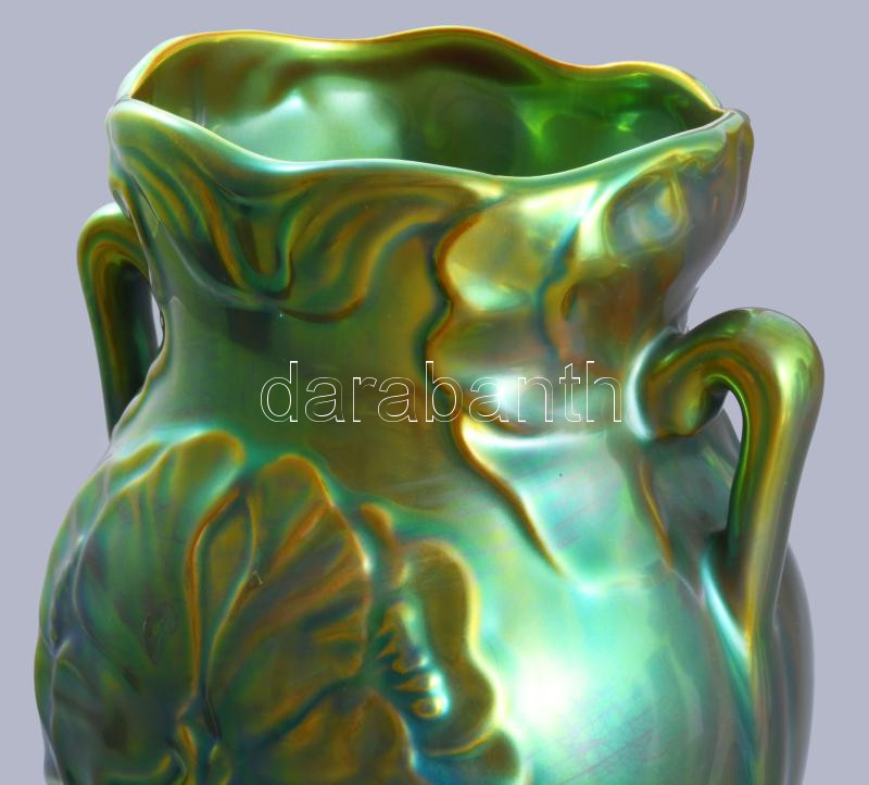 Leírás: Zsolnay eozin mázas váza. Jelzett, hibátlan, m: 22 cm