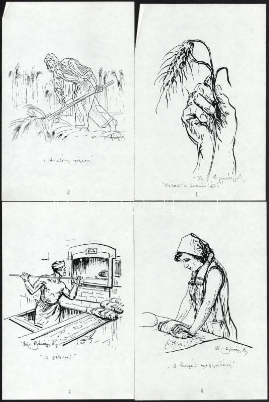 Leírás: Bánsági András (1914-1993): Kenyér a képzőművészetben. 15 db Szitanyomat, papír, jelzett, 14x21 cm Kísérő füzettel