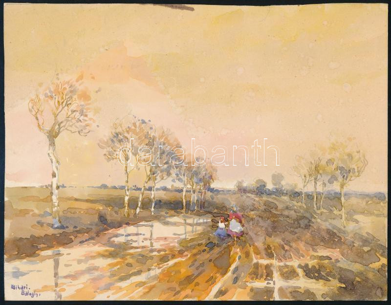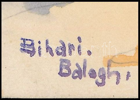 Leírás: Bihari Balogh jelzéssel: Hazafelé. Akvarell, papír, 16×21 cm