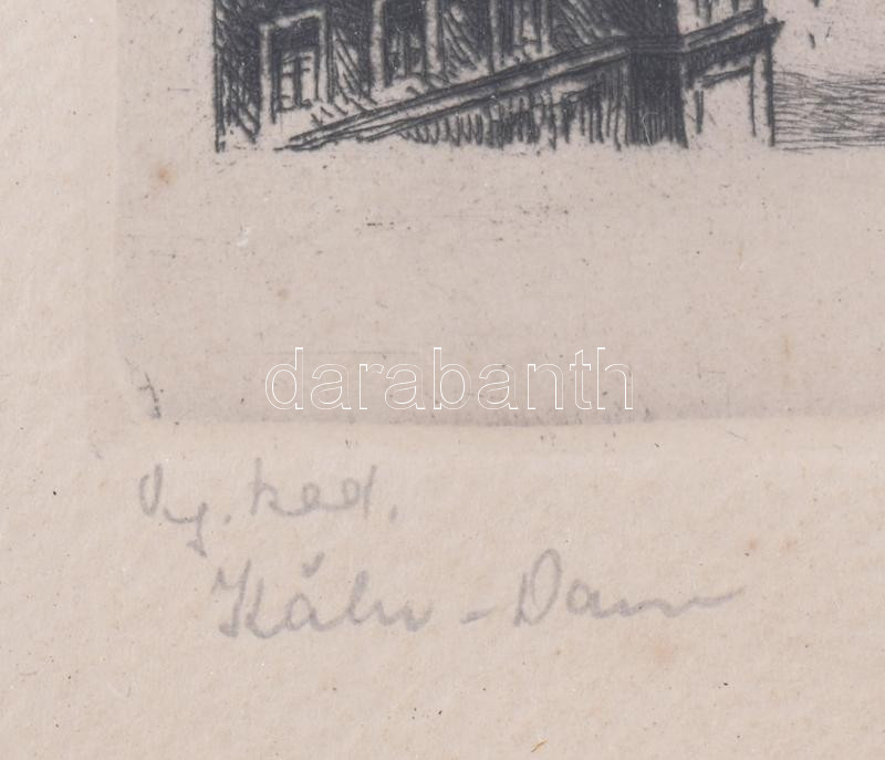 Leírás: Olvashatatlan jelzéssel: Kölni dóm. Rézkarc, papír. Üvegezett fakeretben, 24,5×16 cm