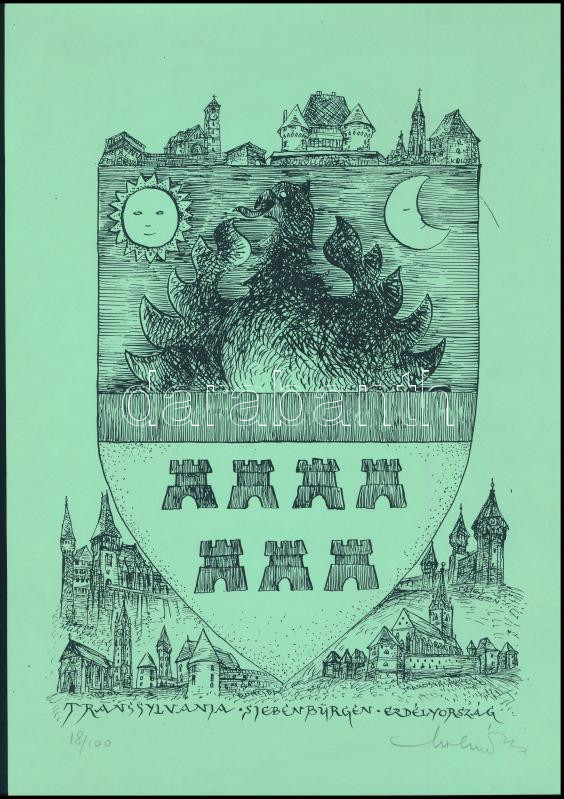 Leírás: Olvashatatlan jelzéssel: Transsylvania, Siebenbürgen, Erdélyország. Nyomat, papír, számozott: 18/100. 23x18 cm