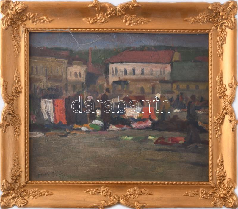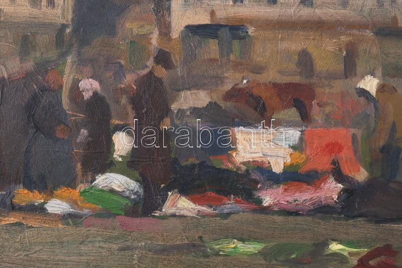 Leírás: Macalik Alfréd (1888-1979): Piac (Nagyvárad vagy Nagybánya?), 1922. Olaj, fa. Jelezve balra lent. Dekoratív, antik, fakeretben, 25×31,5 cm.