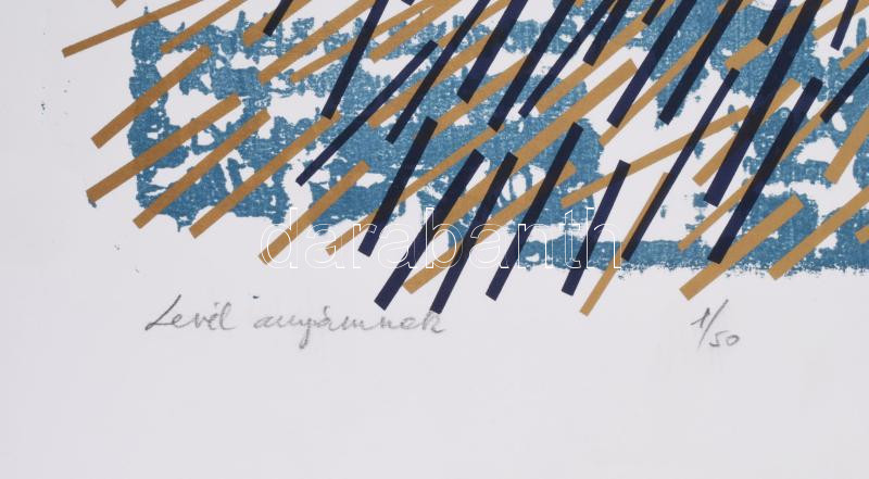 Leírás: Magén István (1950-): Levél anyámnak. Szitanyomat, litográfia, papír, jelzett, számozott 1/50. 50x39 cm