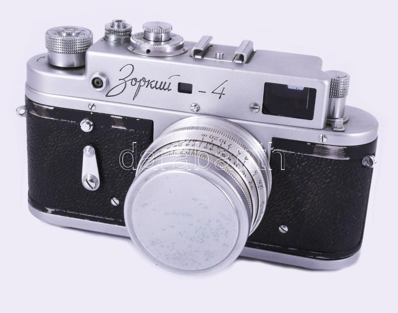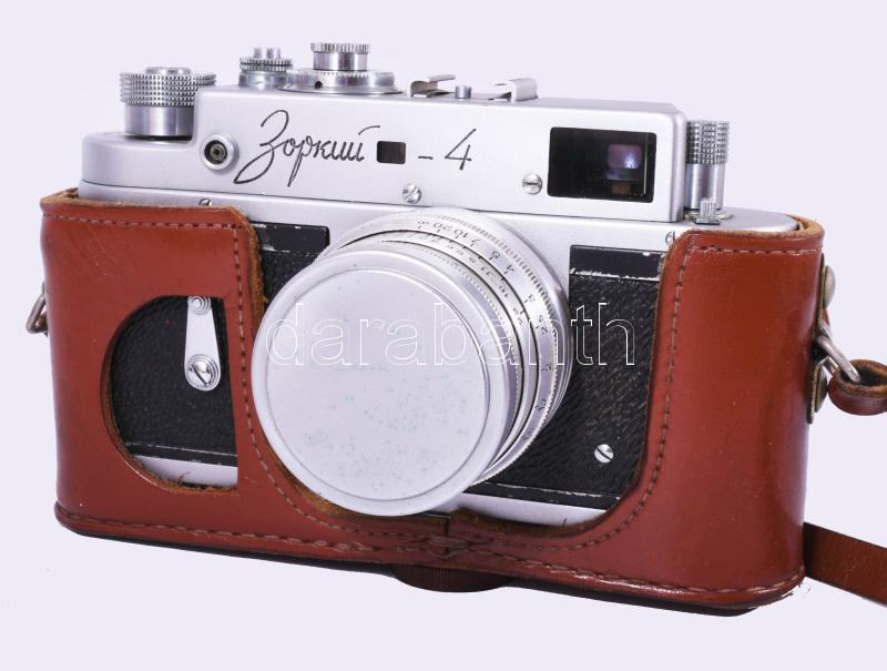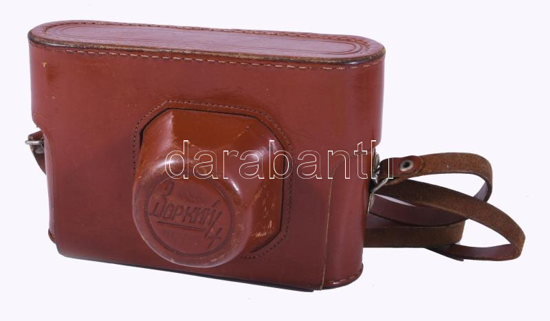 Zorkij-4 retró szovjet fényképezőgép, Jupiter-8 2/50 objektívvel, eredeti bőr tokjában