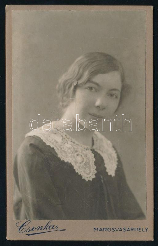 1914 Lány portréja, keményhátú fotó Csonka marosvásárhelyi műterméből,... https://www.darabanth.com/hu/518-Filatelia-kepeslap-numizmatika-mutargy-konyv-papirregiseg-ekszer-aukcio/524.0/Fotomuveszet/Foto~70/1914-Lany-portreja-kemenyhatu-foto-Csonka-marosvasarhelyi-mutermebol-10-5x6-5-cm~II3516357
