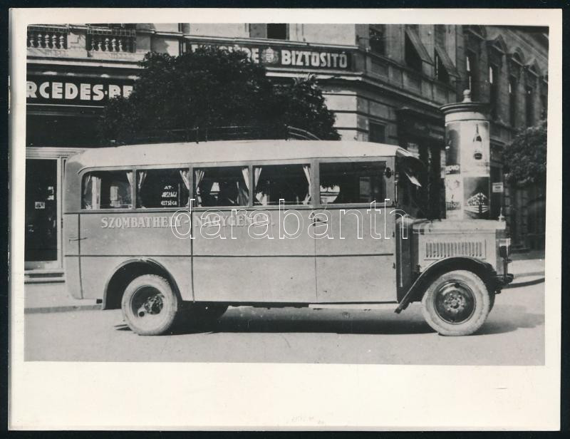 Leírás: 1932 MÁVAG Meredes-Benz alvázra épült 30 személyes autóbusz, mely Szombathely-Nagygencs között közlekedett, fotó, későbbi előhívás, 9×12 cm